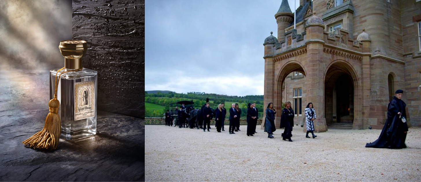 Traitors is shot at Ardross Castle, a 19th-century Scottish Baronial estateâthe kind of Gothic revival architecture that makes you understand why people used to fear God. The decor is perhaps a bit maximalist cartoonish, very much designed to read regal on camera, but underneath the camp is cold stone and the faint inkling that something unholy happened here a hundred years ago. I imagine its bones smell exactly like Relique dâAmour, which is designed to evoke a forgotten chapel with damp moss creeping up stone walls. Itâs all waxed wood pews carved by long-dead craftsmen, incense and myrrh still lingering from centuries ago. And thenâplot twistâa shockingly fresh white lily cuts through all that ecclesiastical gloom, blooming through a crack in the stone. The result is aromatic, a little eerie, and deeply atmospheric. Basically, itâs what youâd wear if you were an early-1800s ghost haunting Ardross instead of just a reality star pretending to be murdered there. Divine, unsettling, and way too sophisticated for anyone on Peacock (Crissy accordingly paired it with an Italian TV show about Sicilian nobility).