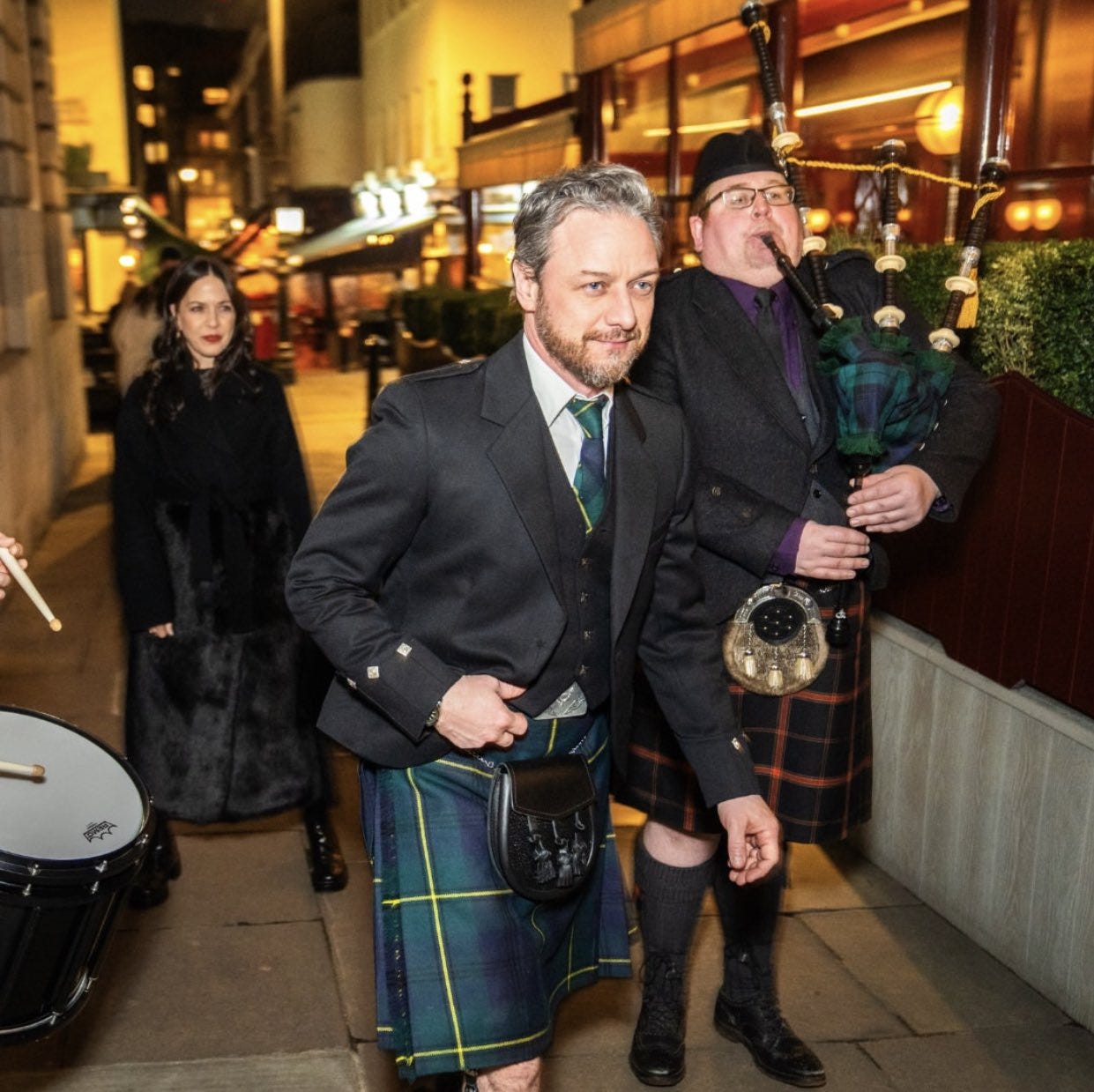 Scottish actor James McAvoy in a kilt (2025) paired with Penhaligonâs The Tragedy of Lord George.
