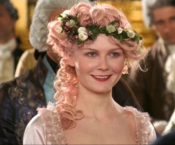 Kirsten Dunst as Marie Antoinette paired with Black Jade by Lubin (a reformulation of the perfume Marie Antoinette allegedly wore!).