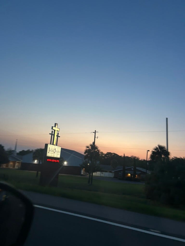 Jacksonville, Florida church from the car at 6:09am to be paired with Burning Palm by 19-69.