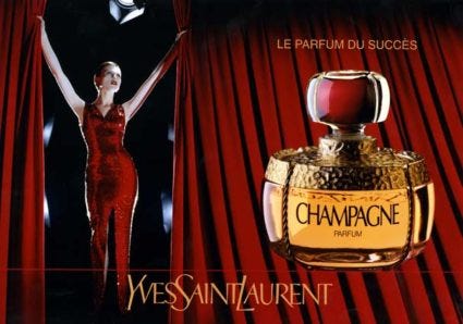 Naomi Campbell v Tyra Banks paired with YSL Champagne.